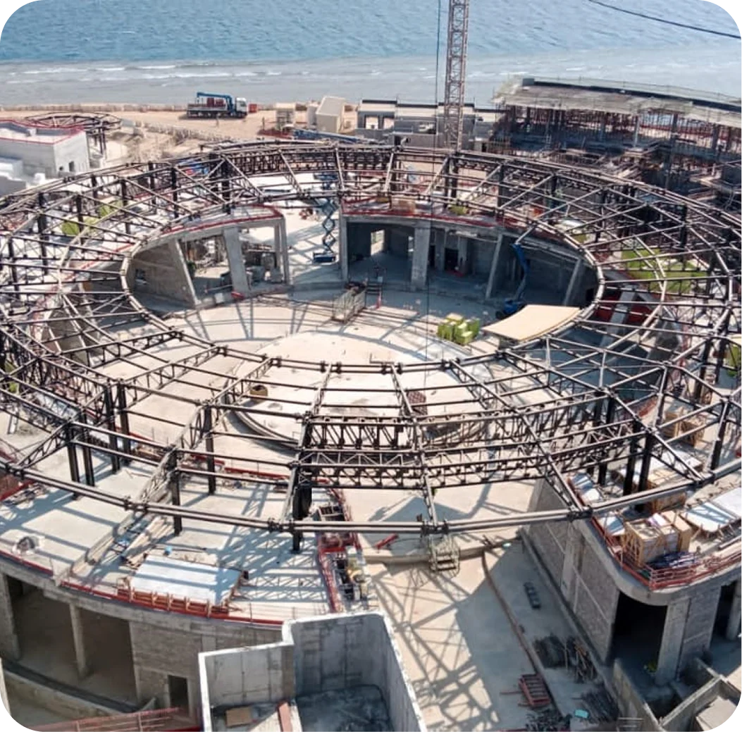 We execute large-scale projects using diverse construction systems, including steel structures, pre-engineered buildings, the American ConXtech system, and reinforced concrete buildings.